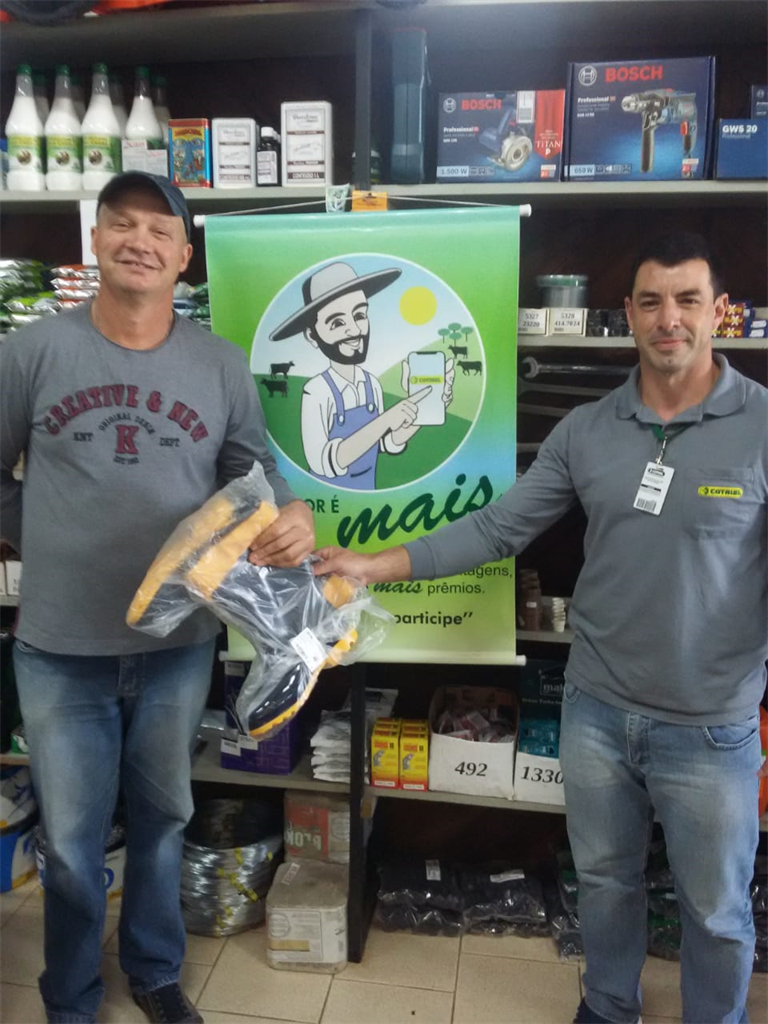 Nas últimas semanas, os primeiros clientes já começaram a fazer as trocas dos pontos por prêmios. Em Alto Alegre, registramos a entrega de botas de borracha ao associado, Amarildo Corazza. Na Ferragem da Sede, o associado Adriano da Silveira, do Pontão do Butiá, trocou seus pontos por uma bota de borracha e uma caixa de ferramentas.