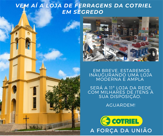 A Cotriel segue crescendo em suas atividades. Atendendo aos pedidos dos associados de Segredo, será inaugurada nos próximos meses a Loja de Ferragens e Farmácia Veterinária no município. A mesma estará localizada em frente à Igreja, no centro. Atualmente, a Cotriel tem cerca de 180 associados que residem na cidade e interior e trabalham diretamente com a Unidade de Sobradinho.