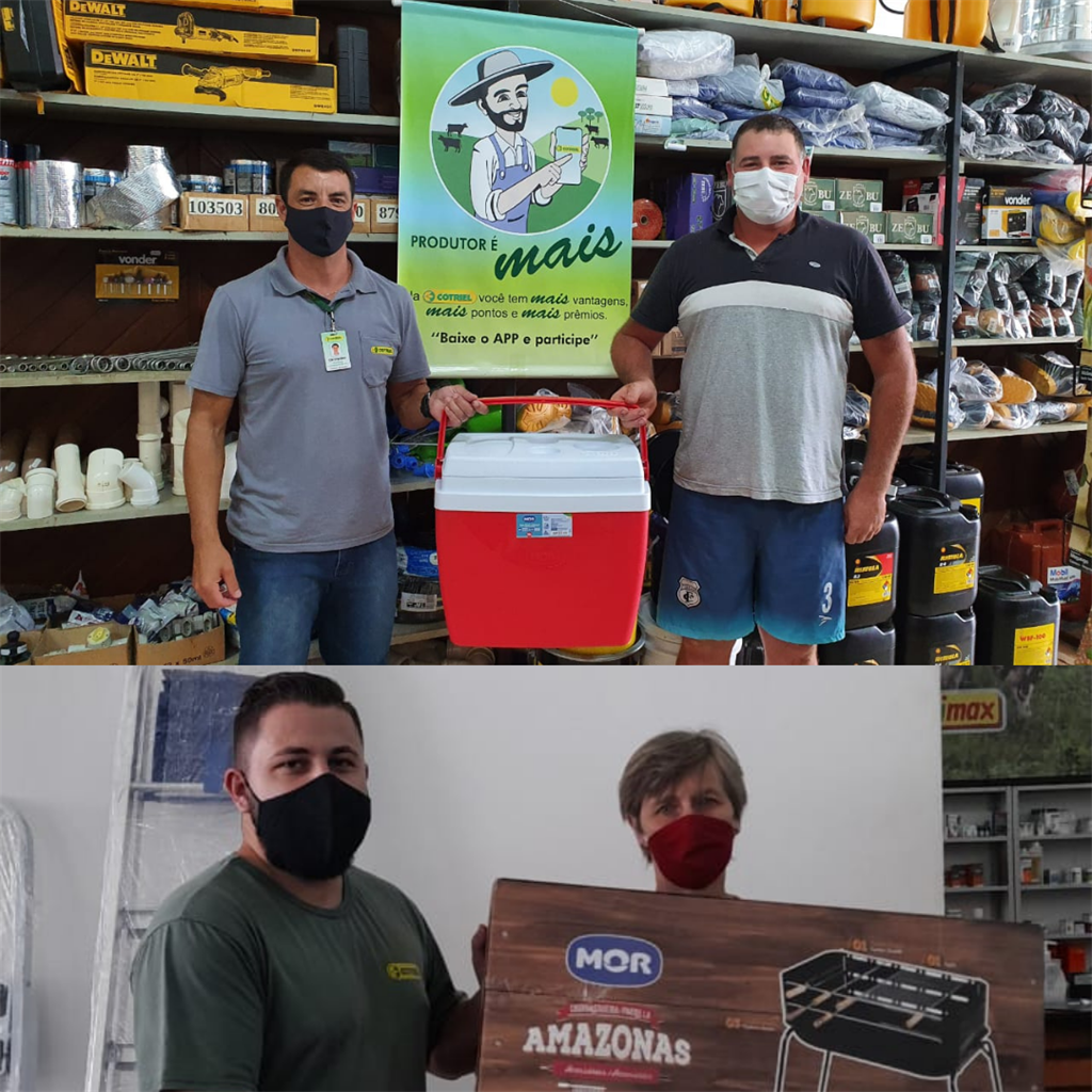 Na última semana, a associada Mercedes Schaeffer Broch, de Campos Borges, e Vagner Corazza, de Alto Alegre receberam os brindes de acordo com os pontos acumulados no Programa de Fidelidade das Lojas de Ferragens Produtor é mais.