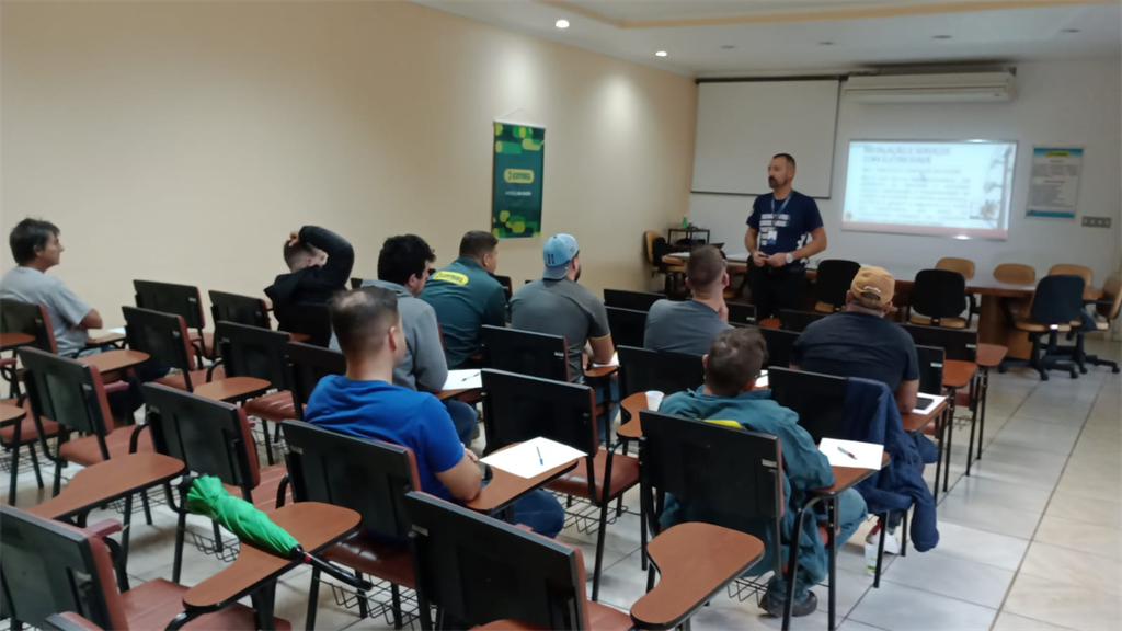 Nos dias 02 e 03 de maio, na Sala de Reuniões da Cotriel, aconteceu mais uma capacitação sobre a Norma Regulamentadora 10 – NR 10, do Ministério do Trabalho, a qual trata sobre “Instalações e Serviços de Eletricidade”. Fernando Machado Martins, da empresa Cotreseg, de Santa Maria, conduziu o treinamento. O encarregado do setor de segurança do trabalho da Cotriel, Jean de Quadros também esteve acompanhando.
