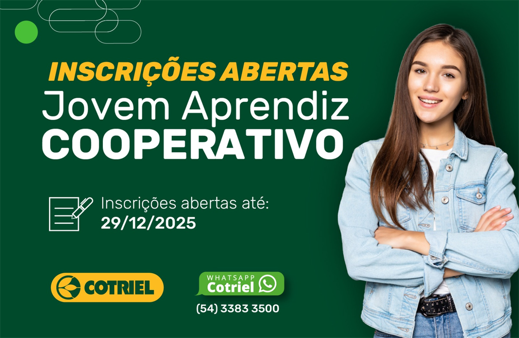 A Cotriel está com inscrições abertas para o Programa Jovem Aprendiz Cooperativo, uma oportunidade para jovens que desejam aprender, desenvolver novas habilidades e construir seu futuro dentro do cooperativismo. O programa integra formação teórica e prática, aproximando os participantes do dia a dia da cooperativa e reforçando valores como cooperação, responsabilidade e protagonismo juvenil.